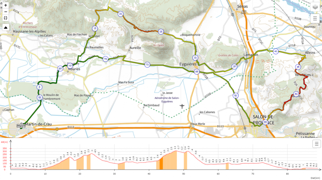 18 – Aureille, Citerne, Figuières, Destet Montfort, gros Calans, Pylone, Figuières Sortie VTT au départ d’Aureille Départ de St Martin à