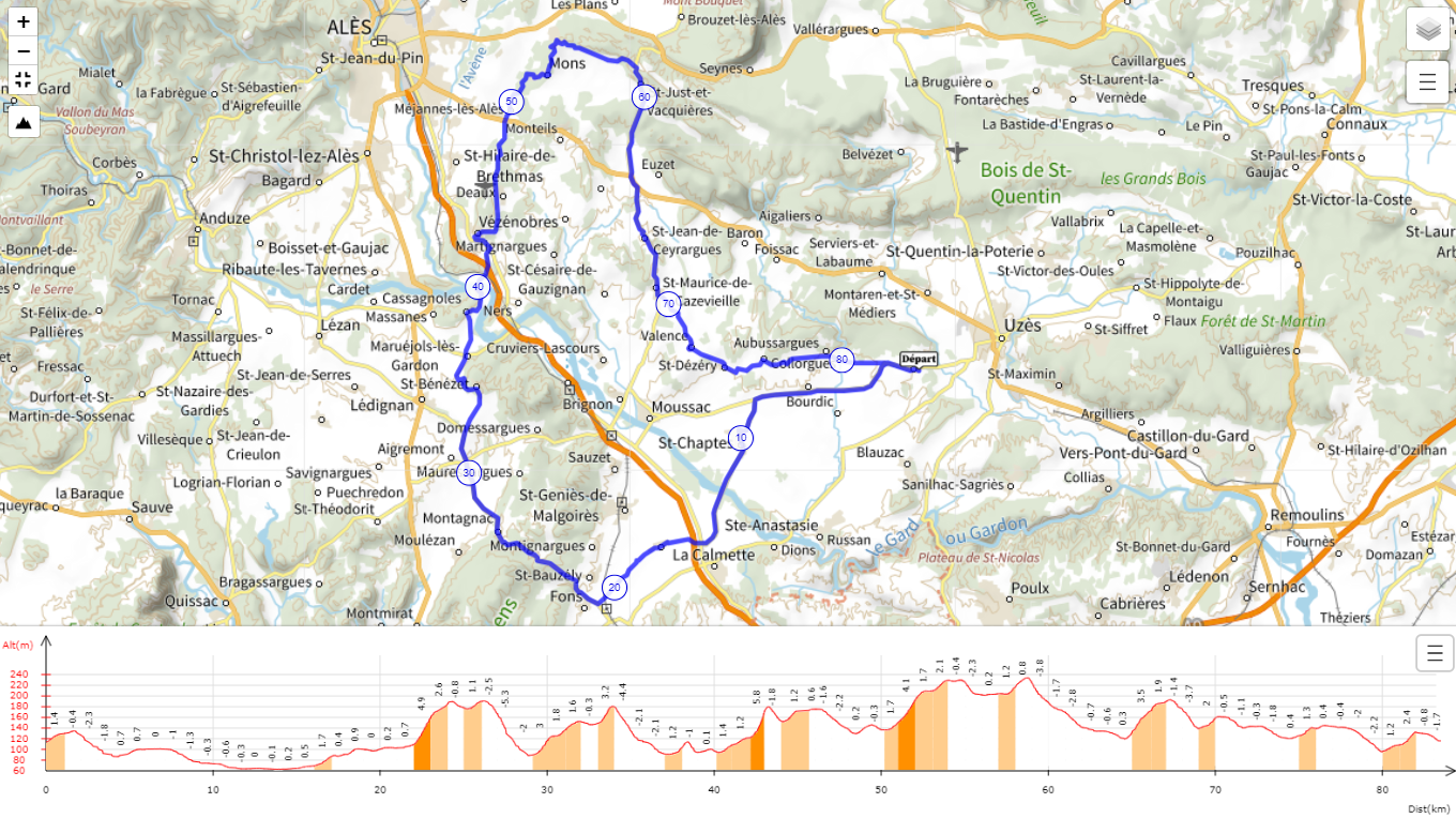 Cliquez sur l’image pour agrandir encore Arpaillargues – Saint Chaptes – Vézénobres – Celas- 94 km 820mMontagnac – St Bénezet – Cassagnoles – Vézénobres…